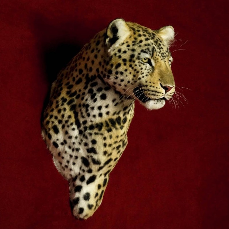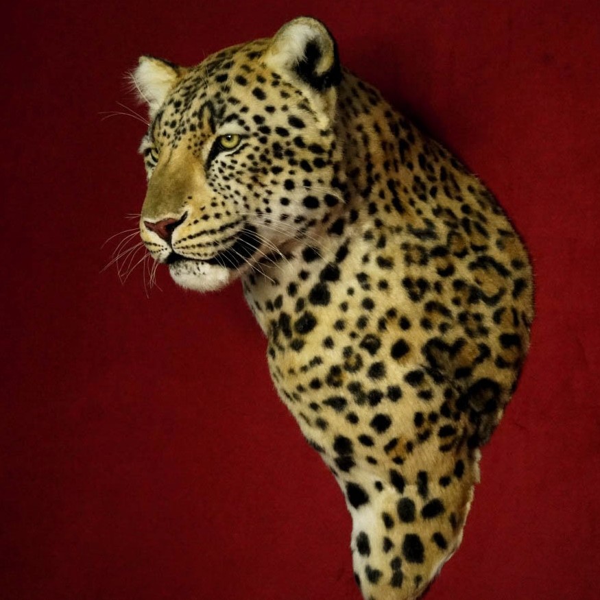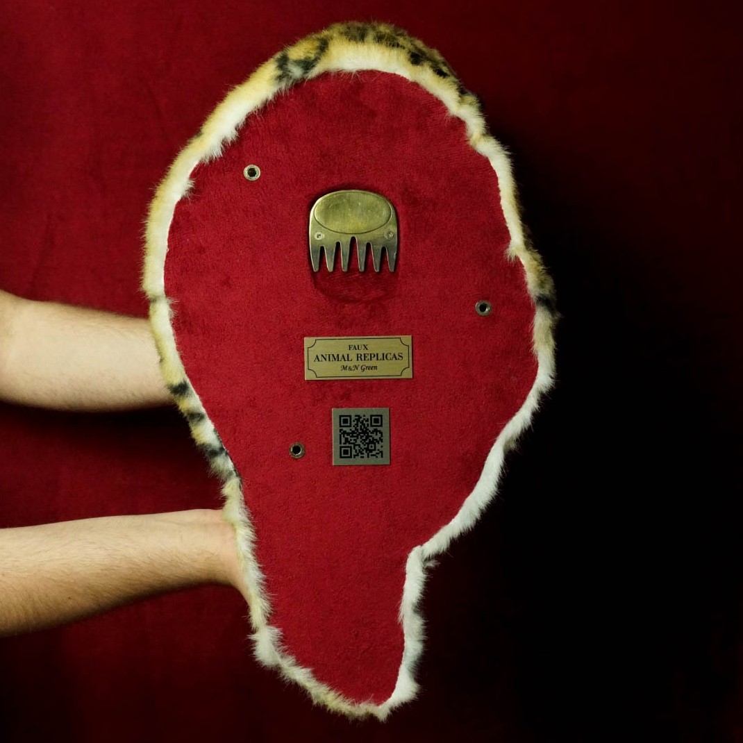 云豹 头部的复制品是用人造 毛皮手工制成的。 100% 人工 标本剥制,不含任何动物产品。
